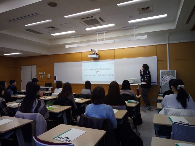 学外学修・キャリアセンターでは、春休み期間に次年度以降の学外学修やキャリア形成に役立つ講座を開催しています。今年は株式会社マイナビさんのご協力のもと、株式会社電通の方を講師としてお迎えし、自己理解ワークショップ「SELFLAG(セルフラッグ)」を開催。学芸学部・総合政策学部から1,2年生を中心に24名の学生が参加しました。