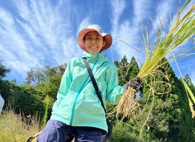 3日目に農家さんの畑でお米を収穫した時